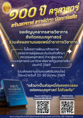 ข่าวประชาสัมพันธ์ คณะครุศาสตร์ ขอเชิญร่วมส่งผลงานเผยแพร่ ตำราทางวิชาการ ในโครงการพัฒนาศักยภาพของอาจารย์ผู้สอนระดับบัณฑิตศึกษา “ศตวรรษครุศาสตร์ ตำราสู่อนาคต” ประจำปี 2569 อ่านต่อ » มีนาคม 23, 2026