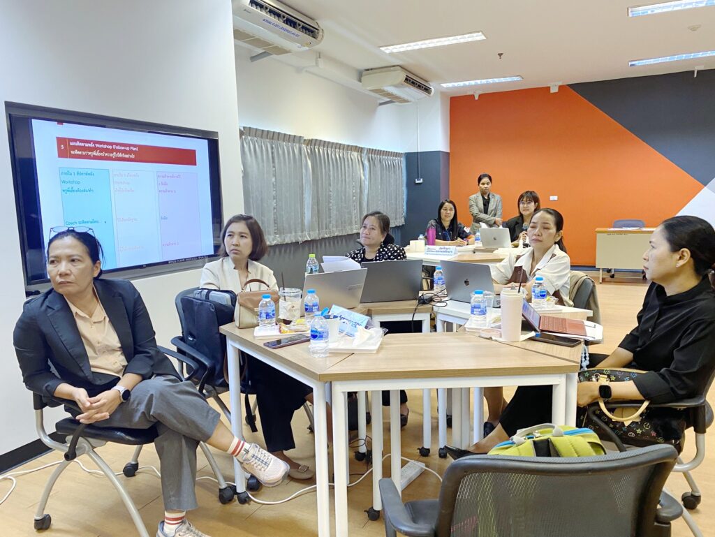 การอบรมในวันที่สองมุ่งเน้น การฝึกปฏิบัติจริงด้าน Coaching และการวางแผนนิเทศ โดยผู้เข้าร่วมได้ลงทะเบียนและทบทวนองค์ความรู้จากวันแรก ก่อนเข้าสู่กิจกรรมเชิงลึกในการพัฒนาทักษะการเป็น Innovation Coach ผ่านสถานการณ์จำลอง ฝึกกระบวนการ Coaching Cycle ตั้งแต่ขั้น Discover ถึง Develop พร้อมรับข้อเสนอแนะจากผู้เชี่ยวชาญ จากนั้นผู้เข้าอบรมได้เรียนรู้การใช้ ระบบ Digital Portfolio & Reflection System เพื่อใช้เป็นเครื่องมือในการติดตามพัฒนาการของนักศึกษาและครูพี่เลี้ยง รวมถึงการให้ข้อมูลป้อนกลับอย่างเป็นระบบ ซึ่งเป็นกลไกสำคัญในการยกระดับการนิเทศการศึกษาในยุคดิจิทัล